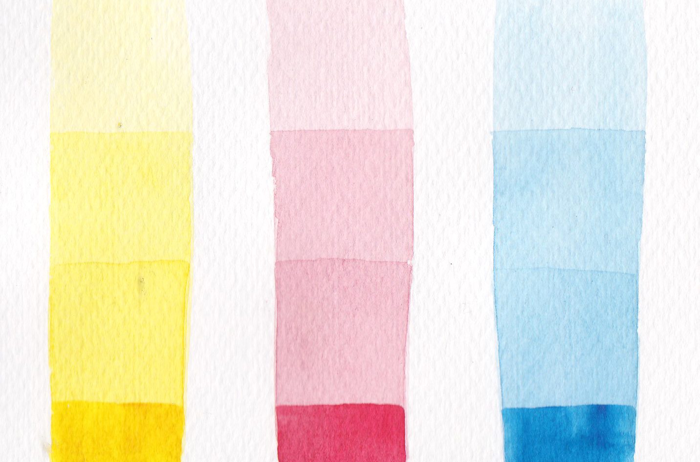 I colori più luminosi (ad esempio il giallo) sono anche quelli che ti offriranno meno gradazioni prima di arrivare alla loro massima intensità, perché la loro differenza rispetto alla luminosità del foglio bianco è minore. Diversamente con un colore molto scuro (ad esempio un blu) potrai creare molte più gradazioni che l’occhio riuscirà a leggere, grazie al contrasto che si crea con la carta.
