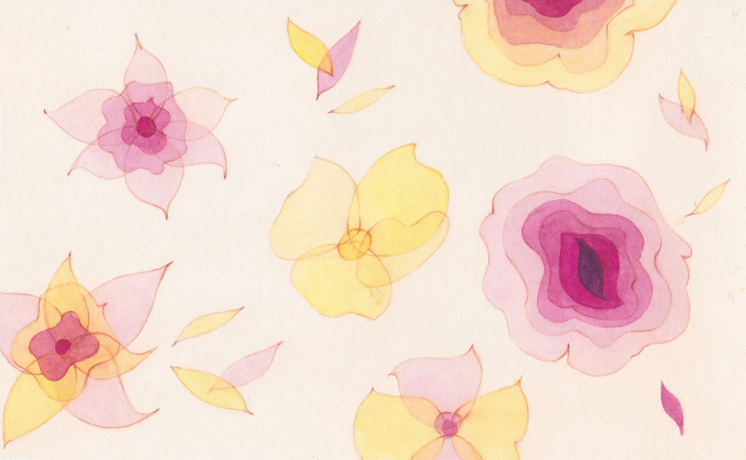 Nel mio esempio, ho disegnato 6 fiori diversi e ho deciso che due fiori avranno solo gradazioni di magenta, uno solo di giallo, mentre gli altri 3 alterneranno i due colori.